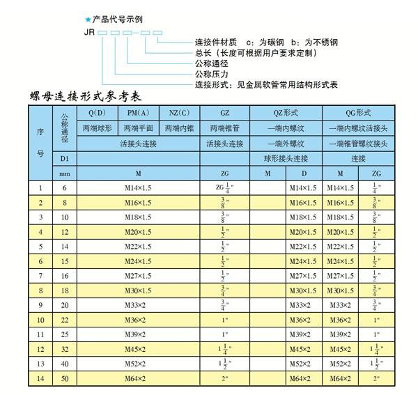 波纹金属软管标准接头型…